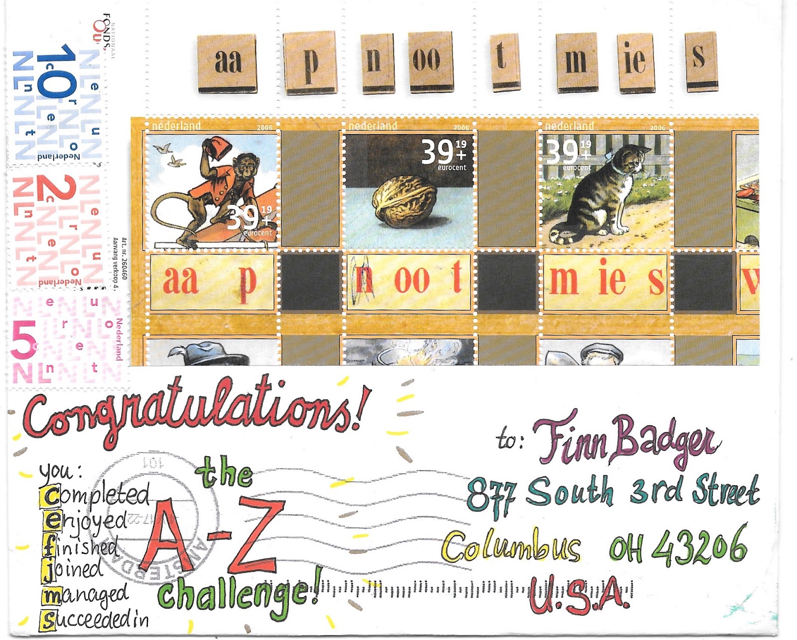 Heleen surprised me by sending me this fantastic envelope and card to congratulate me on finishing, and share a few of her thoughts on how much she enjoyed my blog during the A to Z challenge in April.…