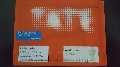 This great envelope from Katerina took a very long time to get here due to the pandemic. For a while the Greek post office was not accepting any items to send to the USA (although I could send to Greece). It hasn't been exactly speedy since resuming, either. This colorful envelope was postmarked in May, and arrived in July.