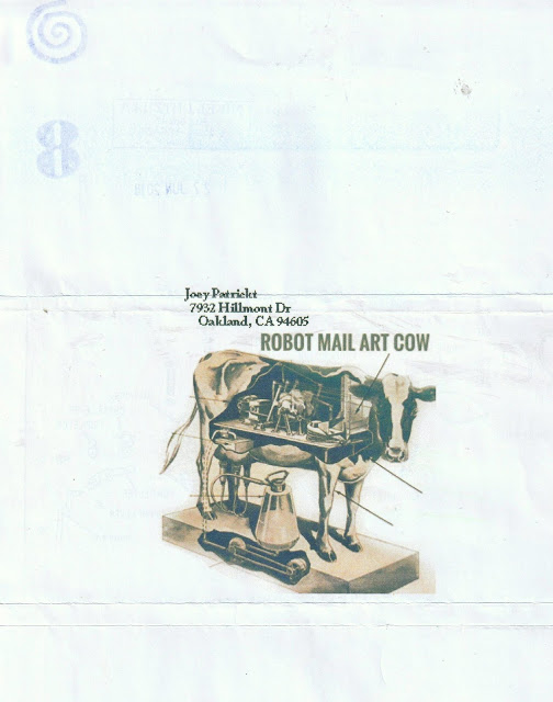 December 20, 2019 - In this post I am sharing a few fave pieces received from mail art luminary Joey Patrickt that - for whatever reason - have not been documented online (at least to the best of my knowledge and records). You will find no chronology or particular thematic thread here: just my best effort to showcase Joey genius and some outlier work that his many correspondents might not ordinarily associate with him.