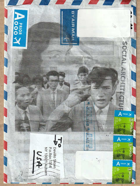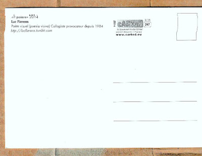 I point out his network involvement because he has sent compelling visual poetry and this material posted shows an excellent application of mail art forms developed by such figures as Ray Johnson and members of Fluxus. In particular, please note Fierens' use of the envelope as extended space for artistic expression.