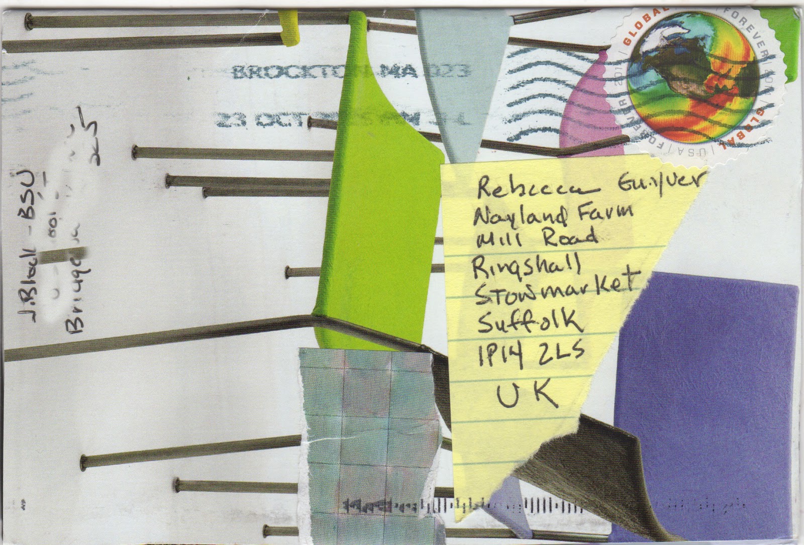 Mail art collab by IUOMA members Carina Granlund (Petsmo, Finland), Diane Keys (Elgin, Illinois, USA) and Borderline Grafix (Austin, Texas, USA)