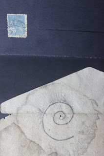 Desenho grafite e colagem com envelope e selo antigo sobre cartolina preta - Maurício Rosa 2017.