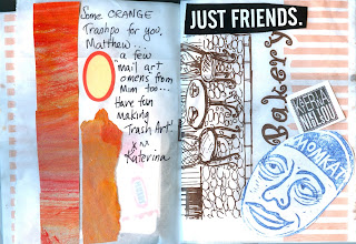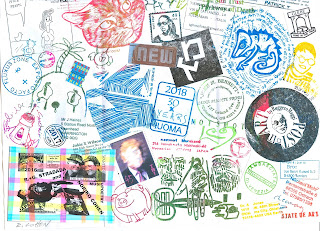 Terry Owenby's mailing was the 1st of this batch I received. Both the front & back of the envelope are painted & contained 2 add & passes, which I'll work on today in hopes of sending out mailings in a week or so. David Stanley Aponte sent a sub #1865 postcard. Ryosuke Cohen generously sent another Brain Cell - 979. Likewise generously, Katerina Nikoltsou sent 2 mailings durning this time. One included a TrashPo bookie full of ephemera. Another included another TLP from Luna Bisonte Prods, 2017. A lot of orange in these works.
