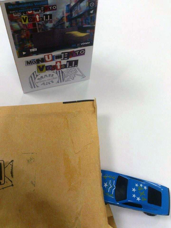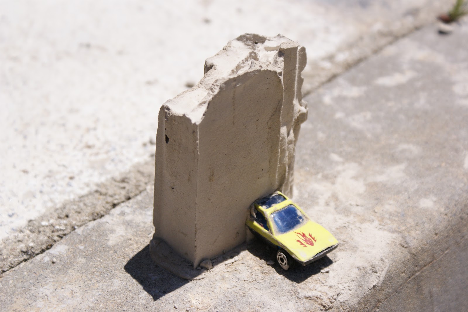 Anybody can take part in it. Some simple instructions are sent to each participant.The work has to be realized including the toy car sent and adding some concrete. The final result has to be photographed and returned with a brief description indicating where was taking and the artist data.
